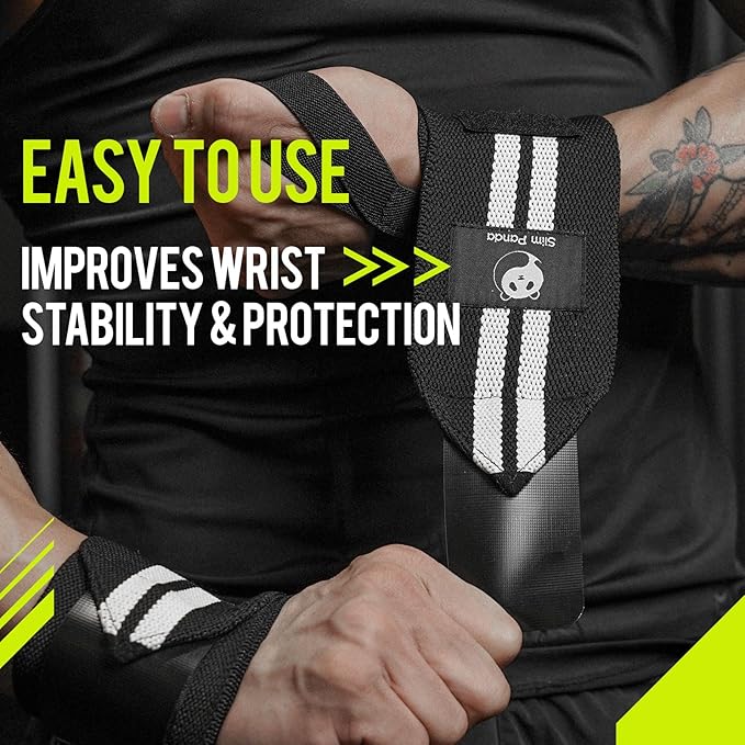 Slim Panda Weightlifting Wrist Wraps- Upgraded Wrist Support with Heavy Duty Thumb Loop for Powerlifting, Bodybuilding, and Weight Lifting Men & Women