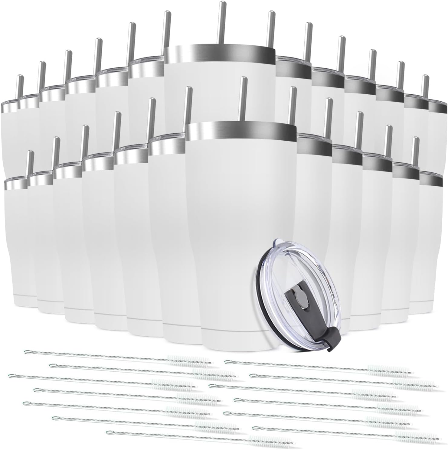 25 Pack 30oz Stainless Steel Tumblers Bulk Reusable Travel Mugs with Lid, Double Wall Powder Coated Coffe Cup for Home, Office, Outdoor Suitable for Vehicle Cup Holders White