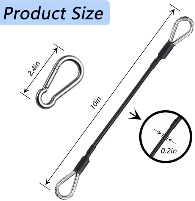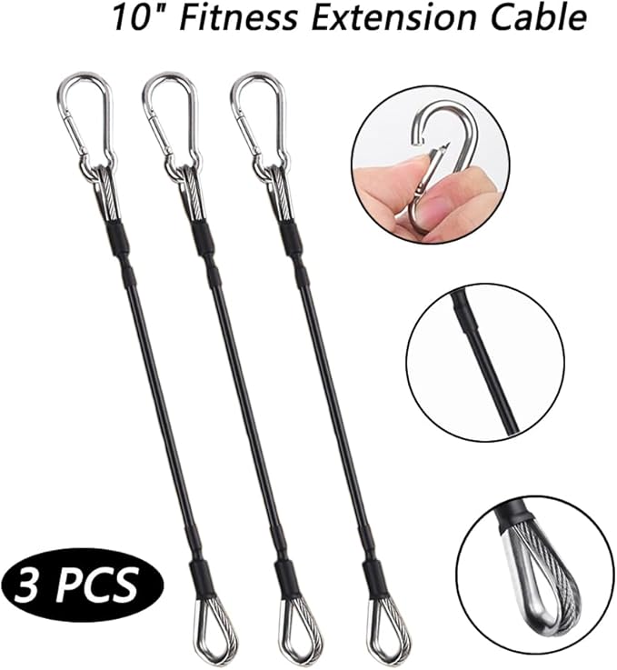 - Product includes:3 buckles and 3 gym extension cords, size: The gym cable extension cord is approximately 10 inches/25.4cm long;The size of the climbing hook is approximately 2.4 inches/6cm long.