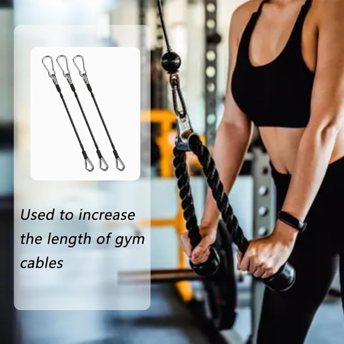 3PCS Gym Cable Extension,Gym Extension Cable-Thick 0.2",Fitness Extension Rope Attachments Compatible Replacement Gym Cables Machine Extension for Tricep Pull Down,Leg Extensions Machine