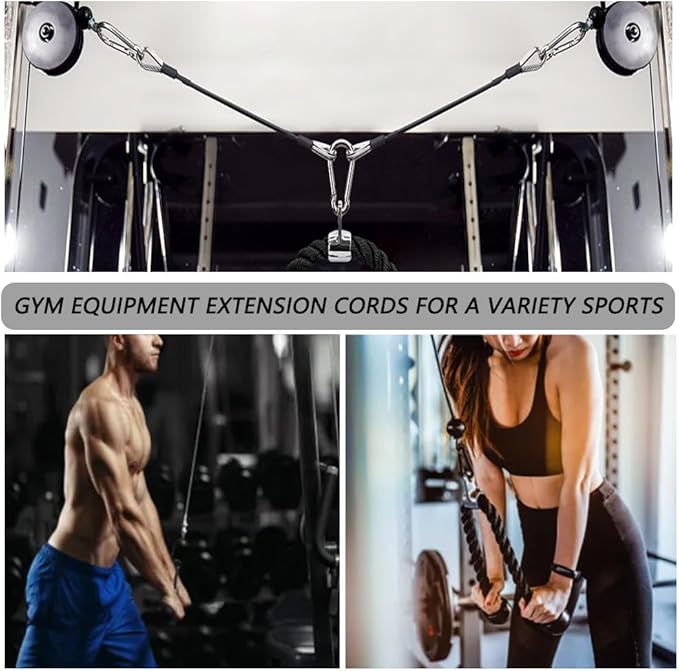 - Easy to operate:Simply connect our heavy-duty gym handle extension cord to most home gym workouts to help develop your triceps,biceps,back,shoulders,abs,and grip strength,especially when pressing the gym cable machine extension section to apply tremendous pressure and some leg exercises.