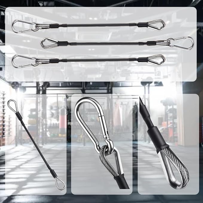 - Sturdy materials:Our gym extension cords are made of stainless steel and PU,which are wear-resistant,sturdy,durable,and have a long service life.There is a nylon protective cover at the connection between the steel wire and the PU sleeve to ensure that the PU sleeve is firmly attached to the steel wire.