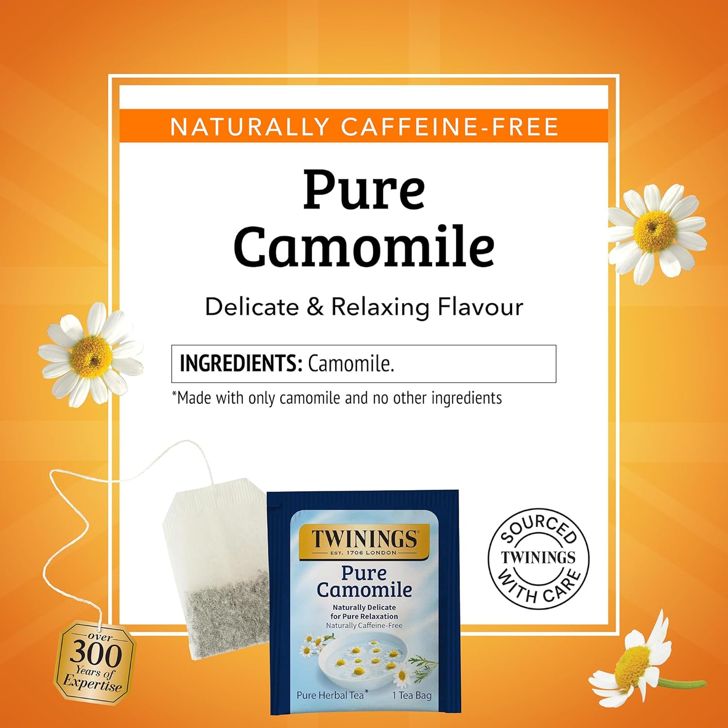 Twinings Pure Camomile Herbal Tea Individually Wrapped Bags, 100 Count (Pack of 1), Delicate for Pure Relaxation, Naturally Caffeine-Free, Enjoy Hot or Iced, 100 Teabags
