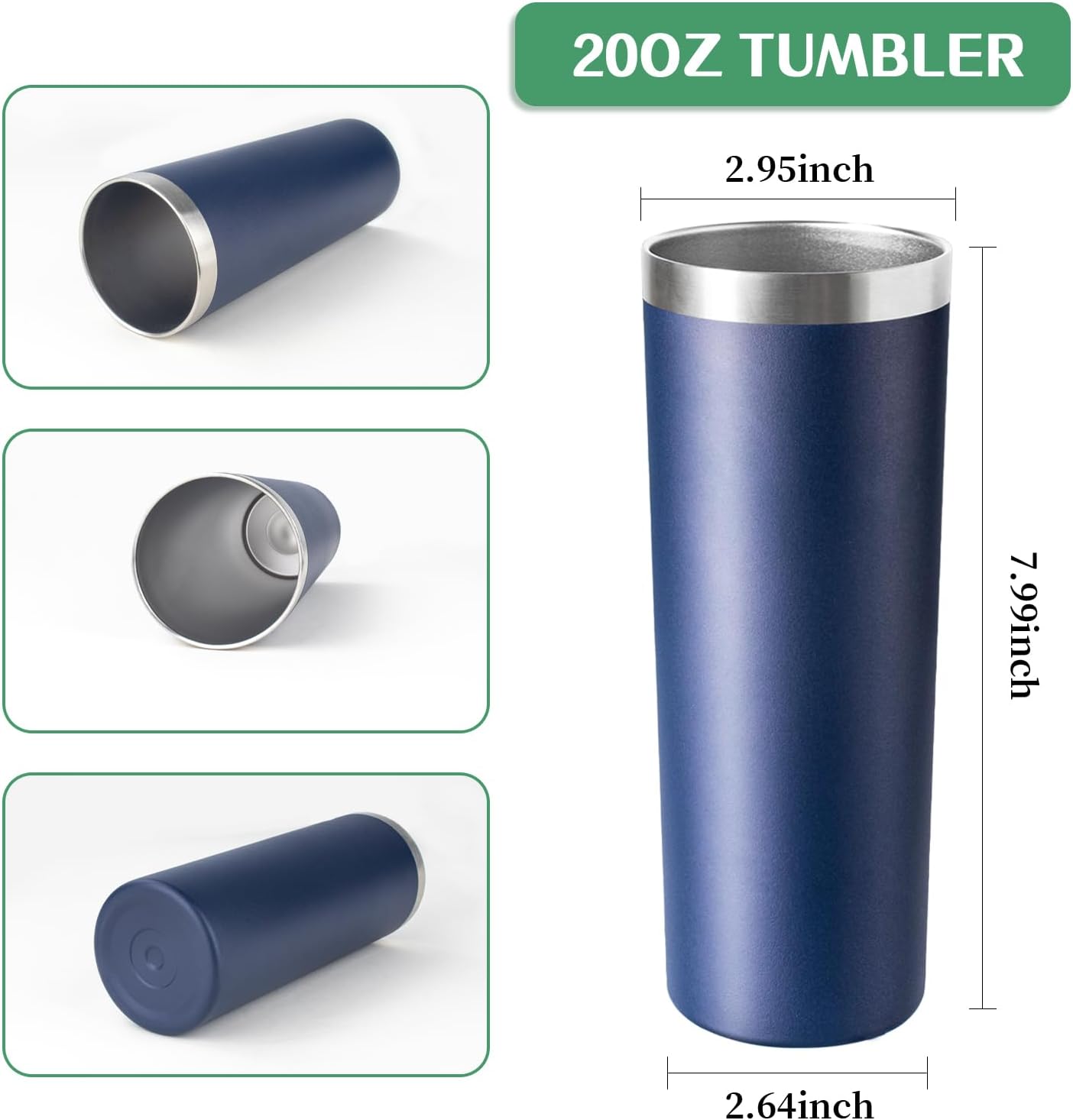 20 oz Skinny Tumbler with Lid and Straw,Stainless Steel Vacuum Insulated Tumbler Cup Double Wall Leak-proof Coffee Mug,Travel Thermal Water Tumbler for Home,Office,Outdoor(Navy Blue,4)