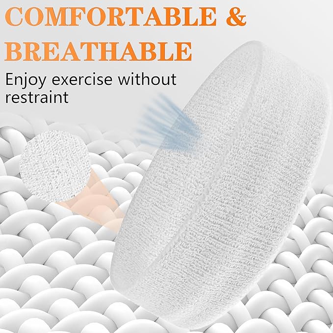 • 💪[Package & After-sales Service] The package contains 4 pieces headbands for women and men. One size fits most. These durable and stylish sports sweat-absorbent head bands athletic sweatbands can meet your daily needs and they look great paired with your favorite sportswear. If you have any questions about the terry cloth sweatbands set, please feel free to contact us and we will always be online to provide you with a satisfactory solution.
