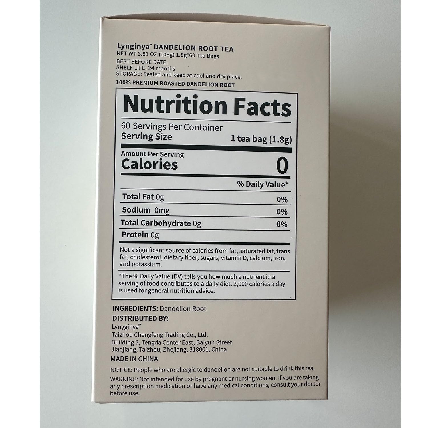 Lynginya Dandelion Root Tea, 60 Tea Bags - Premium Roasted Dandelion Root - Natural Herbal Tea - Rich Flavor - No Sugar & No Caffeine