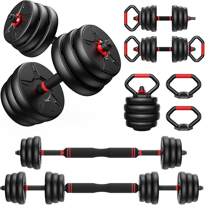 - 【4 in 1 Multifunctional Dumbbell Set】This versatile dumbbell set quickly converts into dumbbells, barbells, kettlebells, and push-up stands, making it suitable for a range of exercises, including bench presses, squats, and more. Enjoy multifaceted fitness!