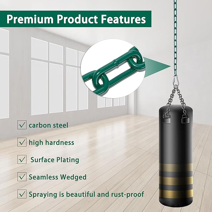- Easy to Use: Designed for convenience, the green hanging swing chain comes with 4 Free Quick Links, ensuring a quick and straightforward installation process. Enjoy a hassle-free experience as you transform your space into a cozy retreat or workout haven