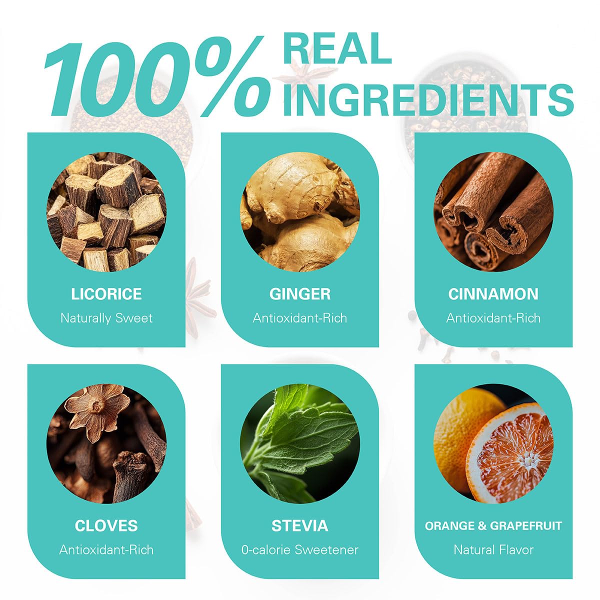 - 【Licorice Spice Blend】Licorice Spice Tea is a licorice-based blend of warming spices (ginger, clove, oleander), 0-karat stevia, and refreshing orange and grapefruit notes