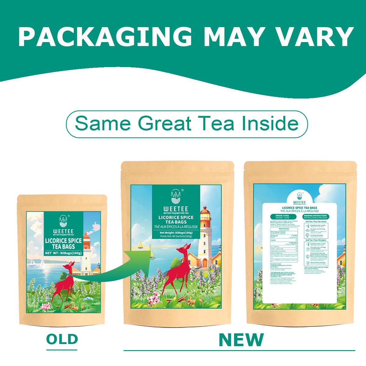 WT WEETEE Licorice Spice Herbal Tea Bags, 2g x 80 Counts, Sweet with Warming Spices Tea Includes Licorice Root, Ginger, Clove, Cinnamon & More, Natural Caffeine-free