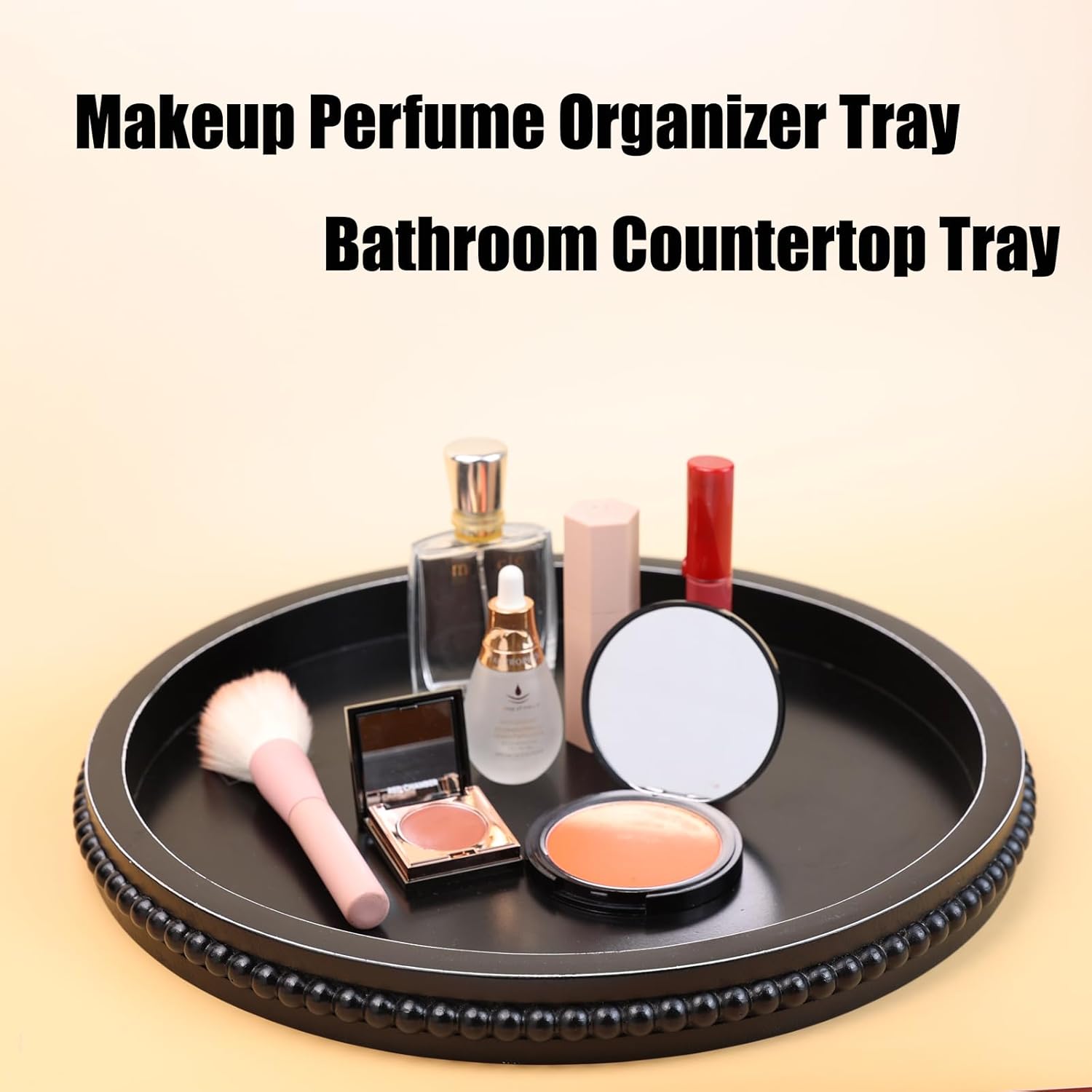 Black Round Wood Decorative Ottoman Tray for Coffee Table Kitchen Counter, Living Room, Handcrafted Wooden Serving Tray for Table Centerpiece