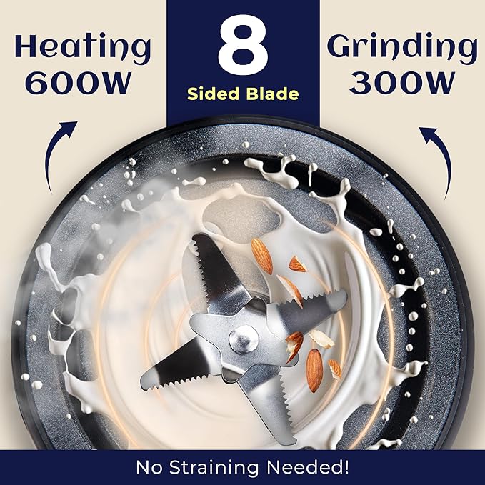 - 🔥 Powerful Heating & Motor: 600W heating & 300W motor for optimal performance. This versatile nut milk maker, soy milk maker & plant based milk maker can also serve as a soy milk machine, oat milk maker machine, almond milk maker & soup maker machine for crafting non dairy milk & milk shake maker drinks.