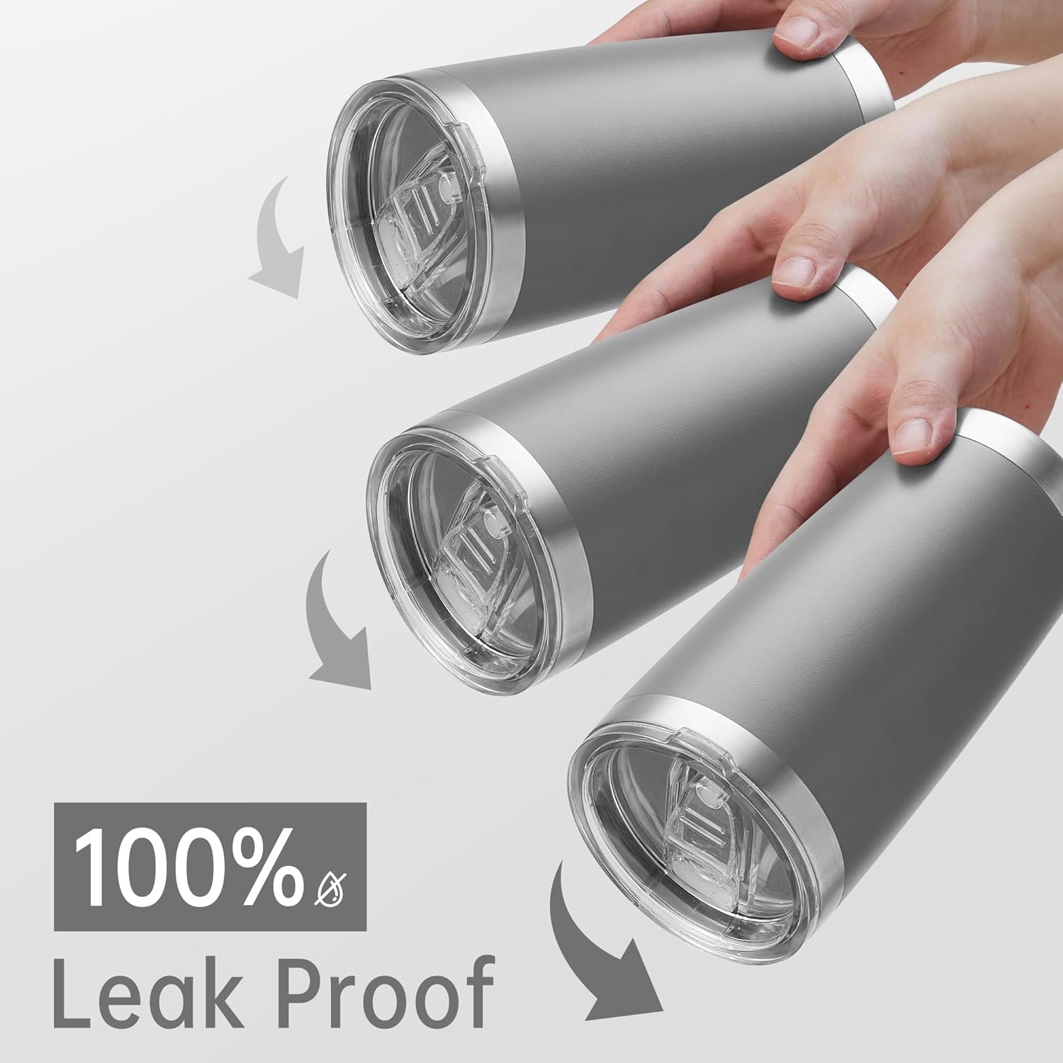 20 oz Tumblers Bulk Stainless Steel Tumbler with Lid Double Wall Vacuum Insulated Coffee Mug 20oz Powder Coated Cup for Hot and Cold Drinks, Gray, 6 pack