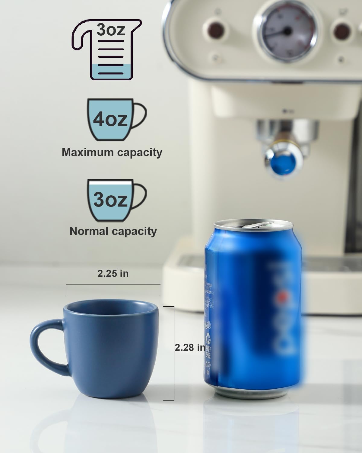 - IDEAL CAPACITY OF DEMITASSE: Measuring 2.5 inch in width and 2.2 inch in height. Each small coffee cup holds 3 ounce and it’s great for a double shot of espresso. Hasense cute espresso cups can match with most coffee machines. Indulging in the aromatic and rich flavor of Italian espresso with mini tea cups.