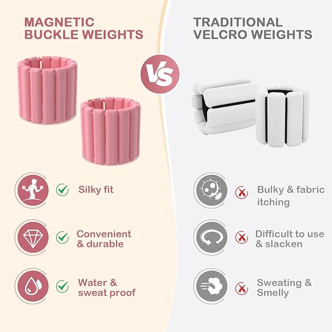 - 【Magnetic Buckle Secures Wrist Weights】With the use of Magnetic fixation, the weight of your wrist firmly clamped like a rock. Strong magnet suction with additional groove structure for dual protection, even if you wear it to play rope skipping, you don't have to worry about it slipping and falling off.
