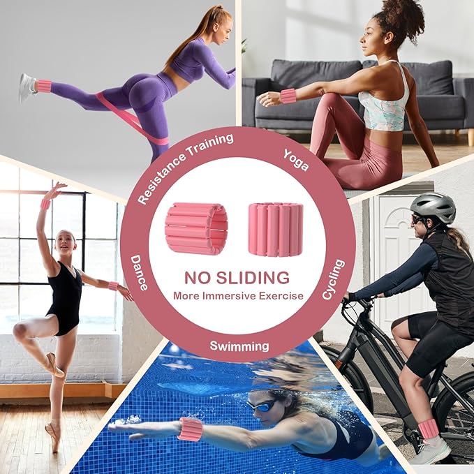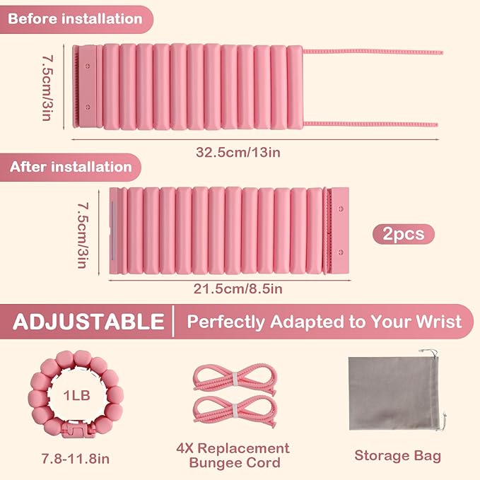 - 【Wrist Weights for Women】Ankle weights set include 2 adjustable silicone weight bracelets,4 spare bungee cords and 1 storage bag. Choose our wrist and ankle weights to make your yoga, dance, ballet, Pilates, aerobics, walking, resistance training, rehab workouts, and workouts at the gym, home, or office more efficient and fun.