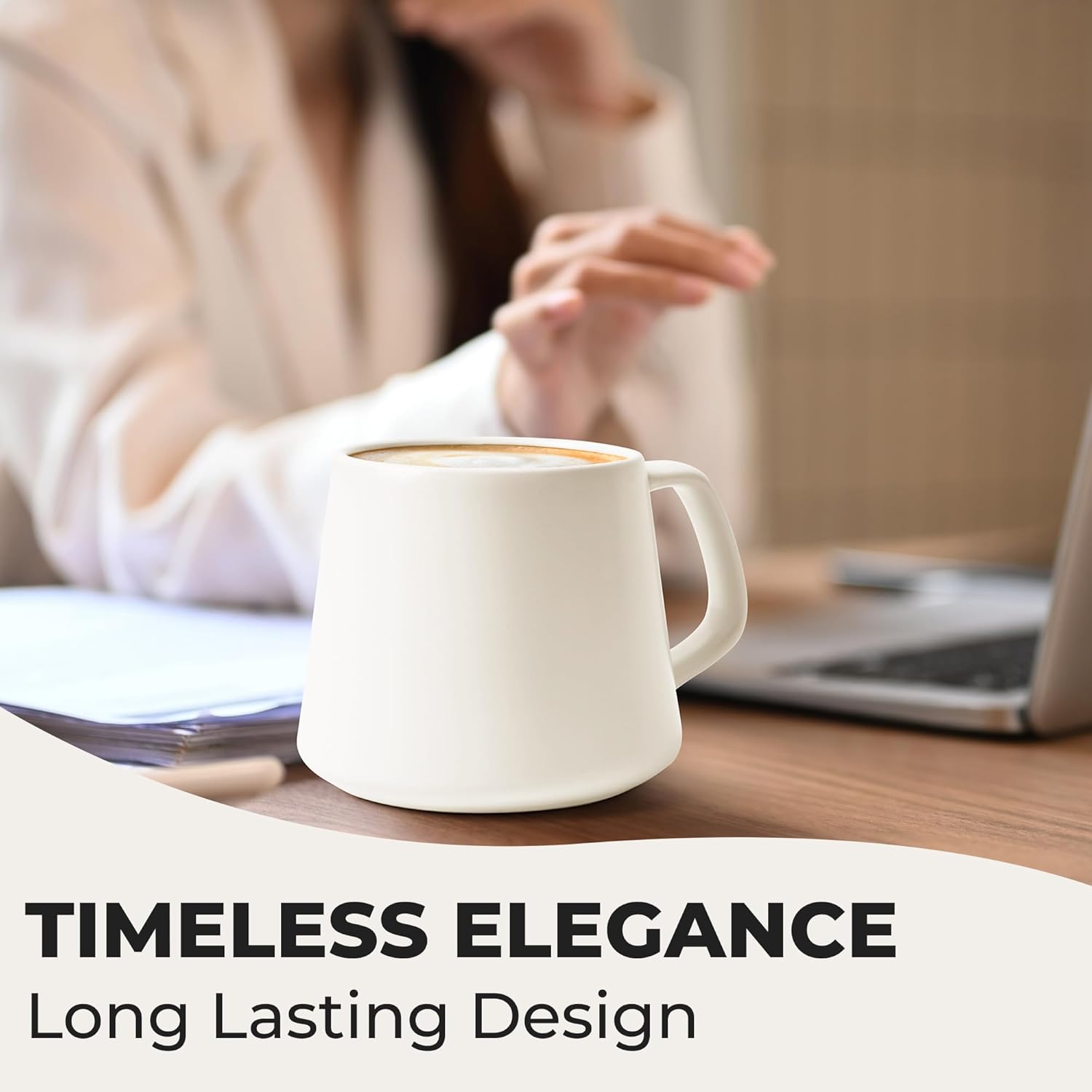 MIAMIO - Coffee Mugs Set of 4 / Large Ceramic Coffee Cups (14 oz) - Mug for Cappuccino, Tea, Espresso - Microwave and Dishwasher Safe - Luxe Collection (White Series)