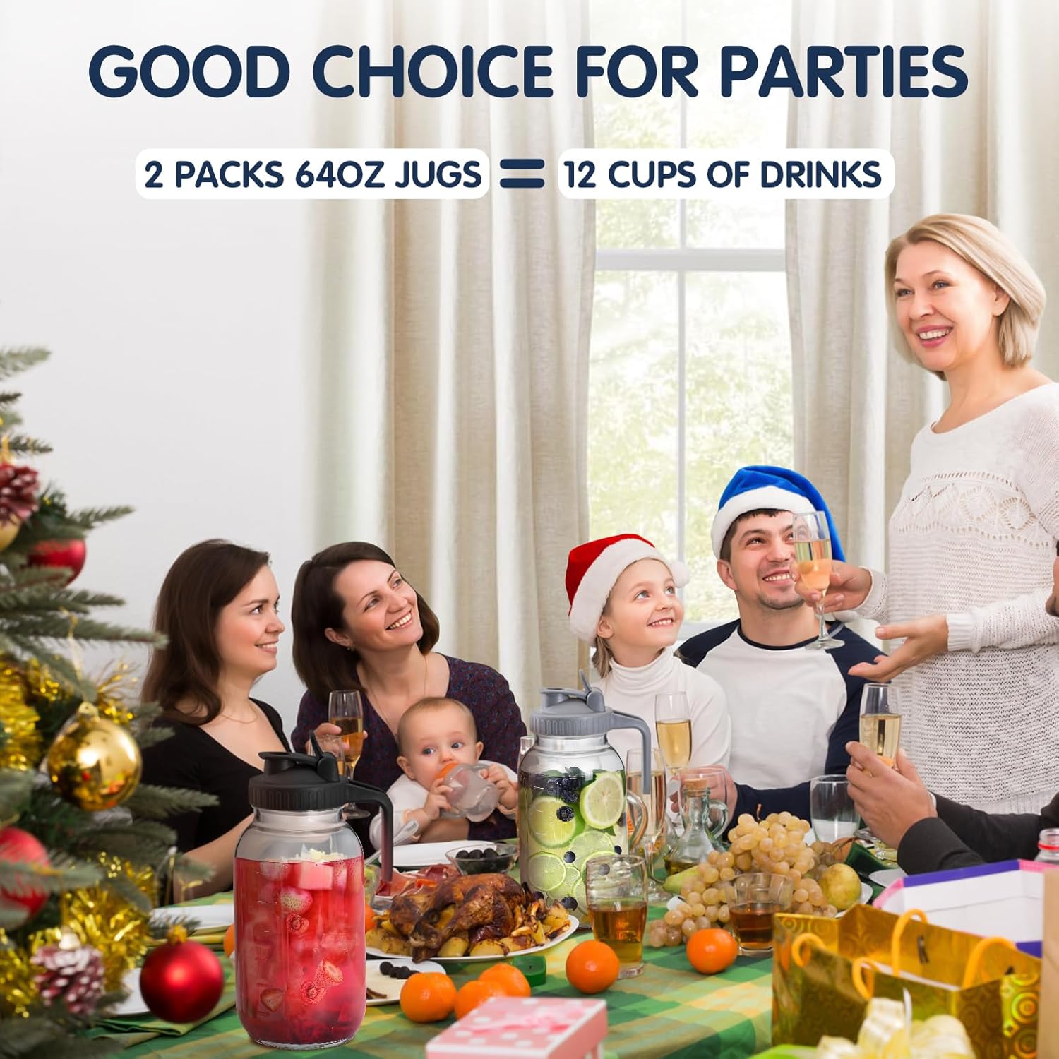 - LARGE CAPACITY, TWO PACKS: Both jugs have a capacity of 64 OZ, which is very suitable for family parties, outdoor camping, large families and other needs. It can not only meet the different tastes of many people, but also provide sufficient capacity.