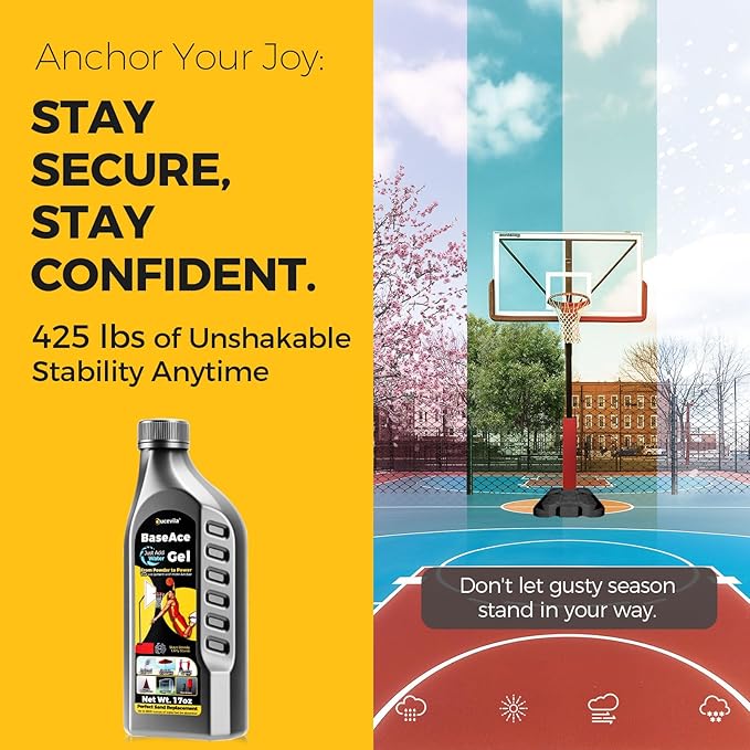 - Quick-Setup Simplicity: Just evenly mix BaseAce Gel with water—in 5-10 minutes, create a rock-solid, stable base for basketball hoops or equipment. No tools, no sand—just pour, activate, and enjoy mess-free, unshakable security