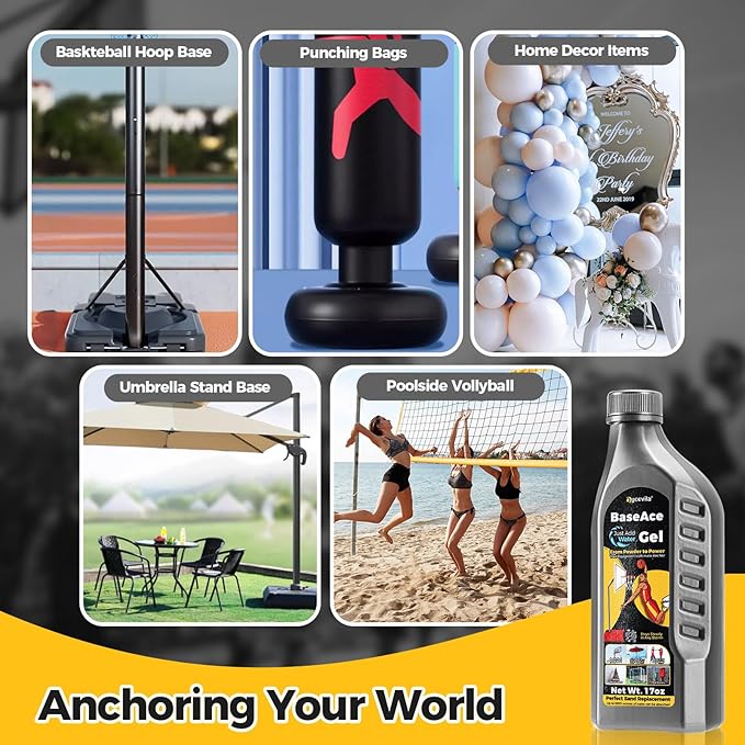 - Ditch Sand & Water—UPGRADE TO BASEACE GEL: Eliminate messy, costly sand and leak-prone water. BaseAce Gel’s freeze- & leak-proof formula locks down basketball hoops, umbrellas, or gear—zero spills, zero damage. Cost-effective, long-lasting
