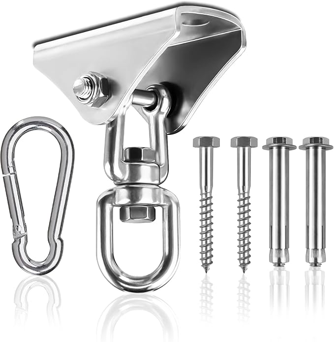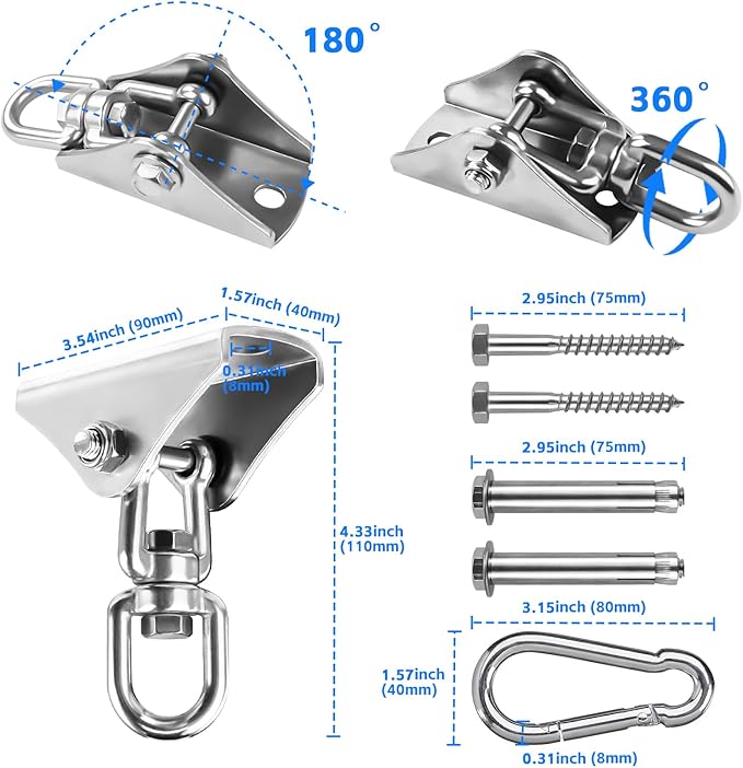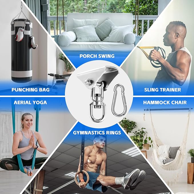 - 360° Rotation: 360 degree swivel designed for heavy duty punching bag chaining and rotation with exceptional flexibility, helps take pressure off the wood beams in your garage and adds extra support. Swings and rotates with ease. Allows for a full range of motion and hitting the bag from all angles