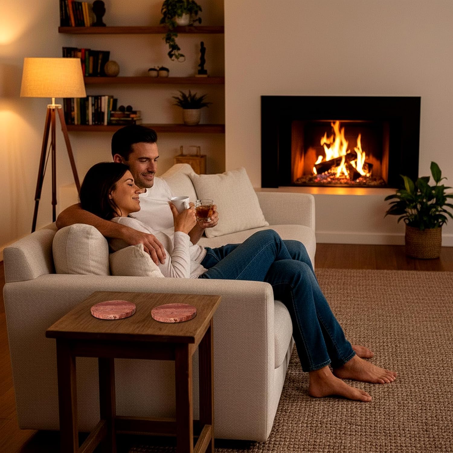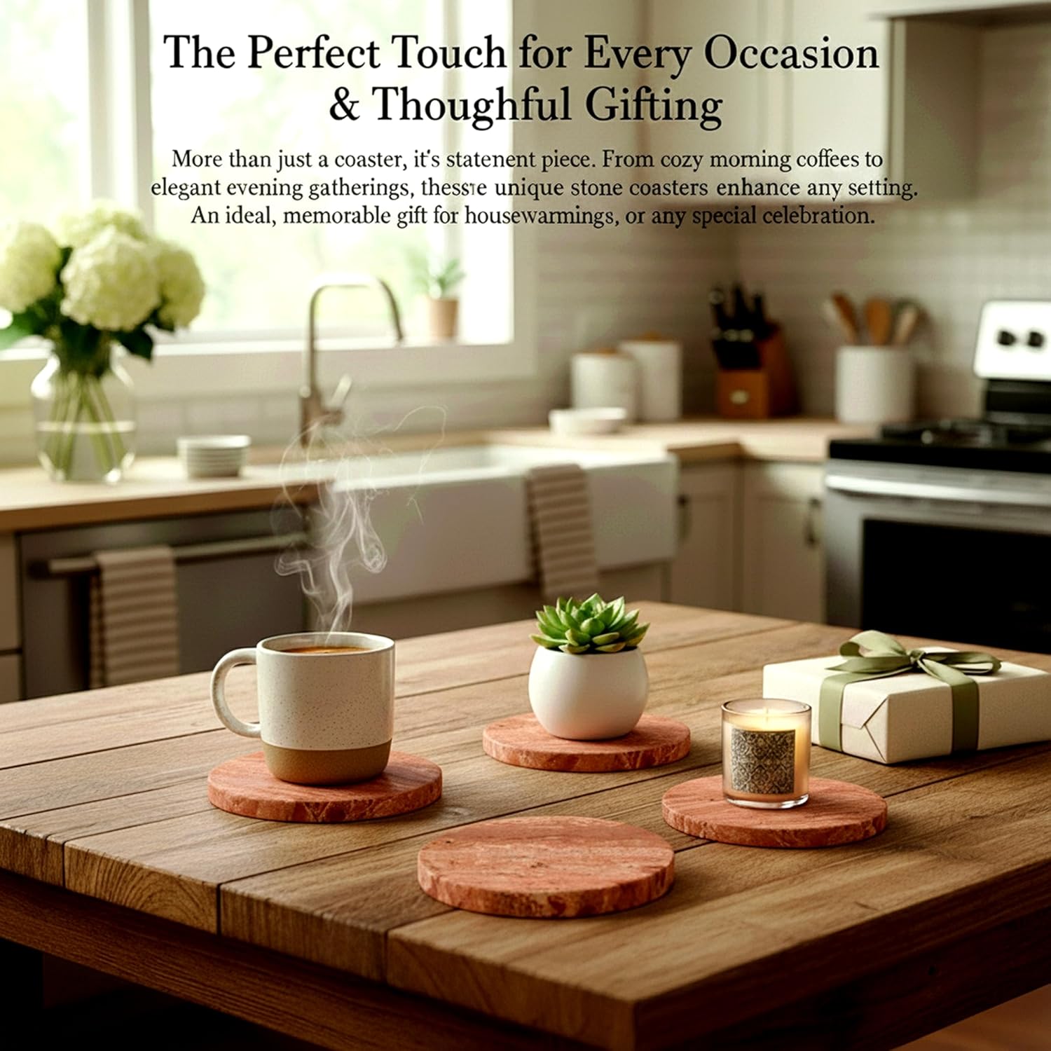 CASACOUTURE-Red Travertine-Stone-Coasters Set of 4-Round -4" Diameter Drink Coasters for Housewarming Desktop Protection Suitable for Various Cups - Sturdy and Durable Aesthetics