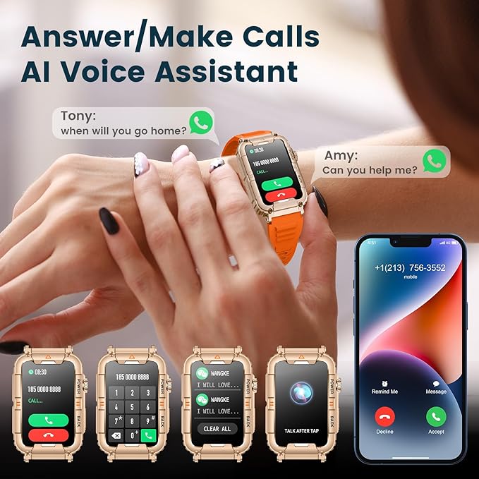 - Answer/ Make Call Smart Watch: Bluetooth calling smartwatch support, the watch has a built-in microphone and speaker, you can make and receive calls on the watch. Compatible with Android and iOS smart watches for men women. The smart watch is able to synchronize your phone's information, including SMS, social app notifications (Facebook, WhatsAPP,Twitter,Instagram,Skype, Telegram) and more. The watch vibrates to alert the user of new messages