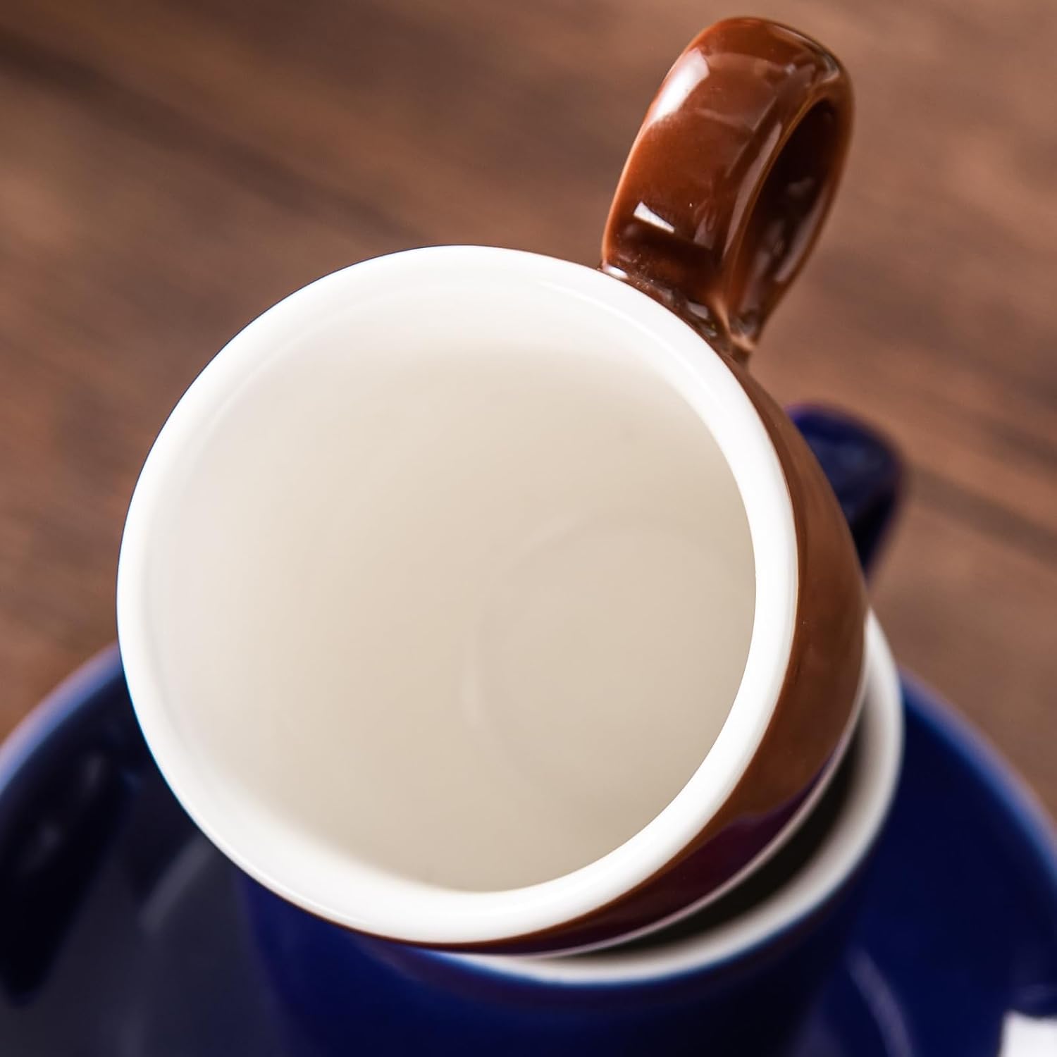 - Rich Color: The coffee cup and saucer set is colorful with 8 colors including deep blue, yellow, red, black, grey, brown, to meet the needs of different users and bring a unique style to the dining table.