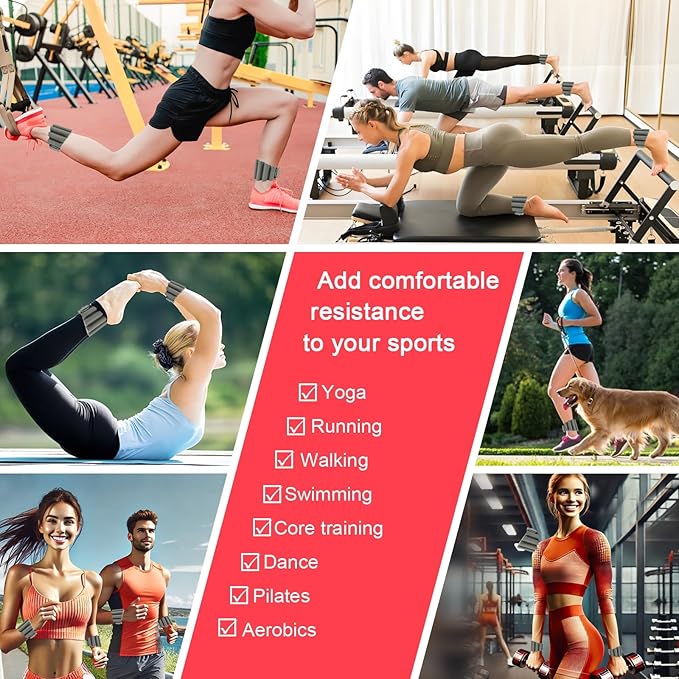 - [WORKOUT ESSENTIAL] Our wearable ankle and wrist weights are perfect for a wide range of exercises, including fitness, Pilates, walking, jogging, yoga, running, pool exercises, home gym sessions, aerobics, strength training, and physical therapy. Featuring a secure watch strap buckle, they offer a perfect fit for everyone. Whether worn on your arms, legs, hands, feet, wrists, or ankles, each weight is adjustable to suit your fitness needs. These small, exercise weights are an ideal and versatile workout essential for women, men, and kids, whether for travel/home workouts, indoor or outdoor sessions, or even dryland and aquatic exercises.