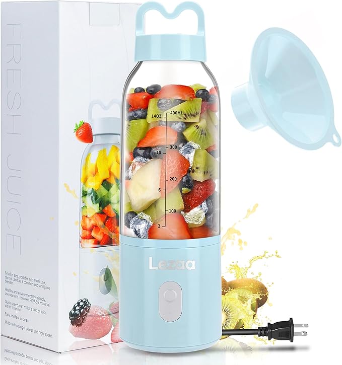 Smoothie Blender,Personal Blender with Funnel, Portable Blender for Shakes and Smoothies, 6 Stainless Steel Blades for Powerful Blending Performance,175W Blue (Blue)