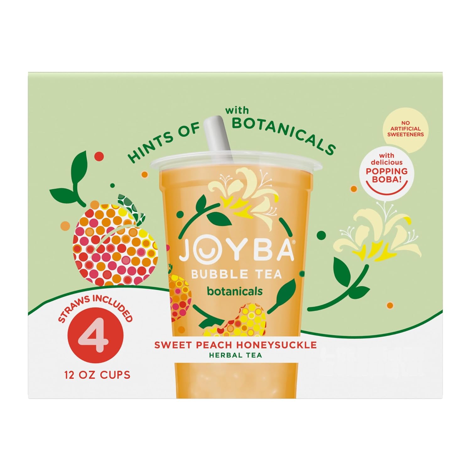 - Joyba Botanicals Sweet Peach Honeysuckle Bubble Tea Pack of 4 cups makes it easy to enjoy real brewed tea infused with vibrant fruit flavor on the go.