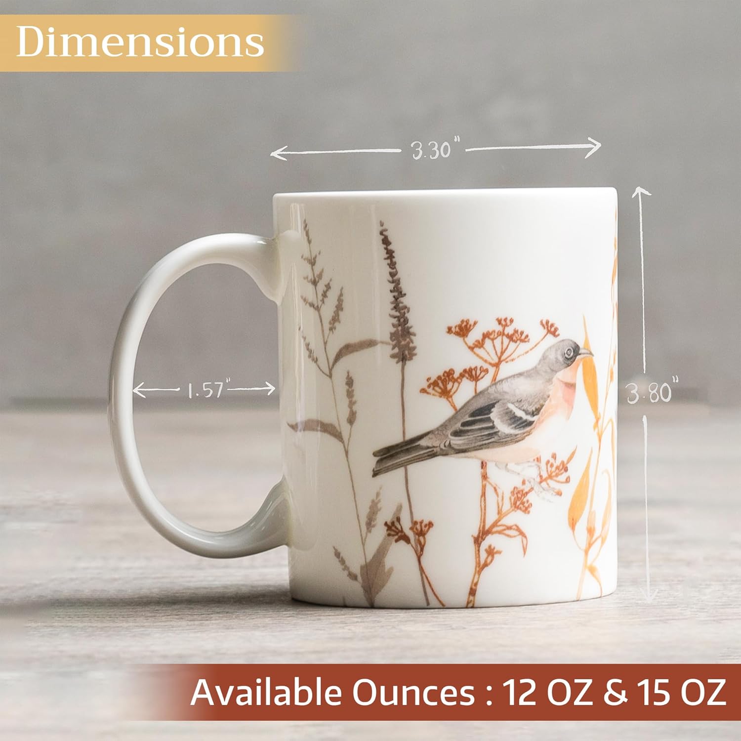 Maison d' Hermine Coffee Mug with Handles Fine Bone China Mugs Pack of One Tea Cups for Hot Beverages Cappuccino Latte Home Office Perfect for Gift (Meadow Florals - Beige Meadow Sunrise, 15 Ounce)