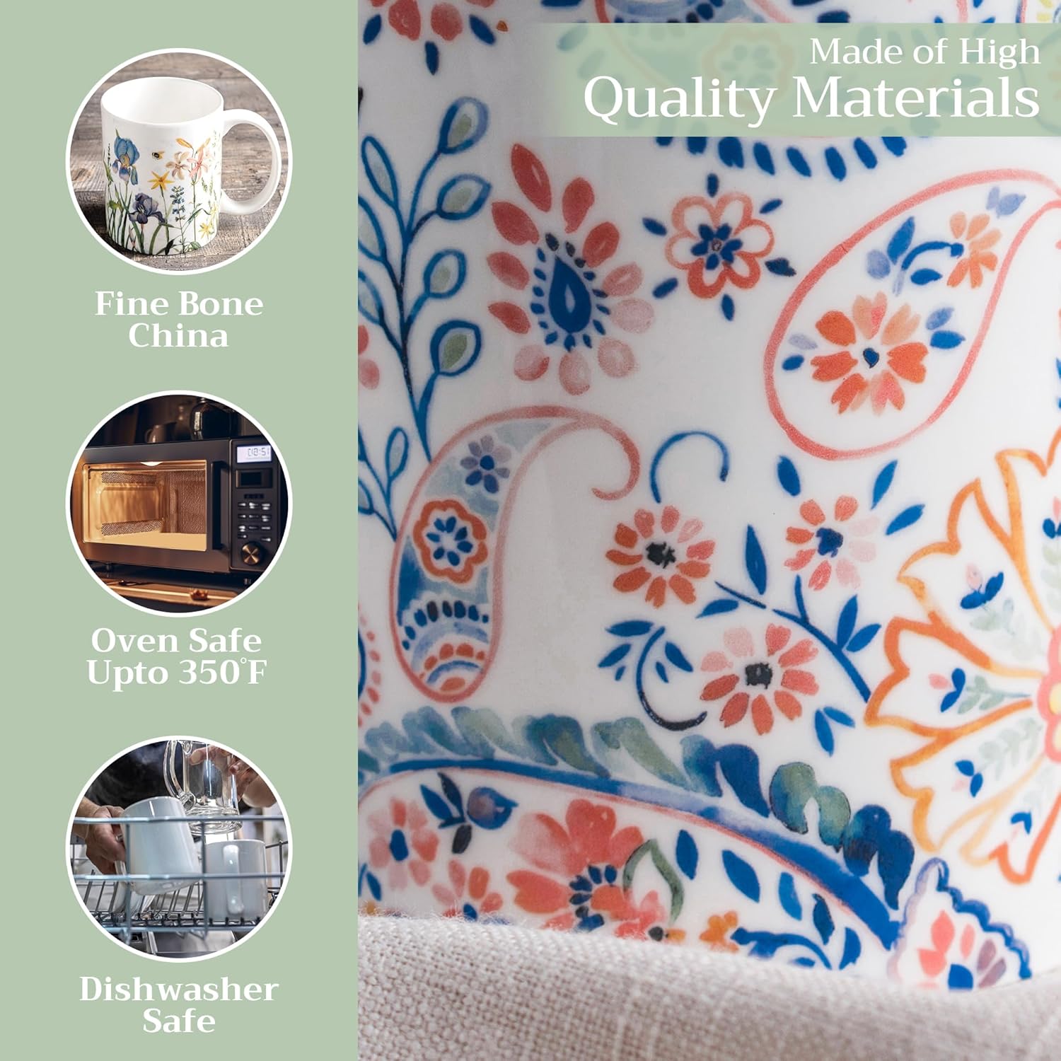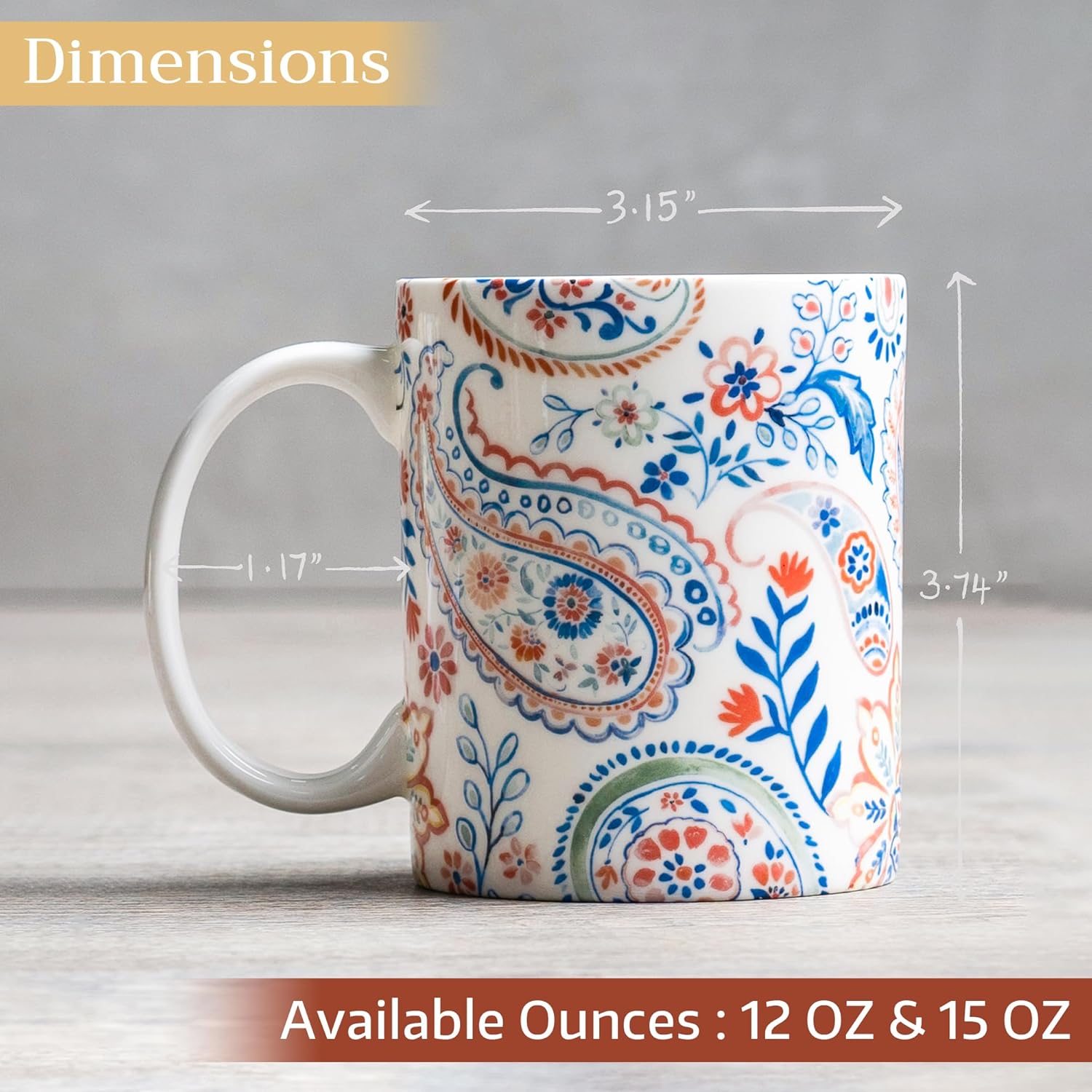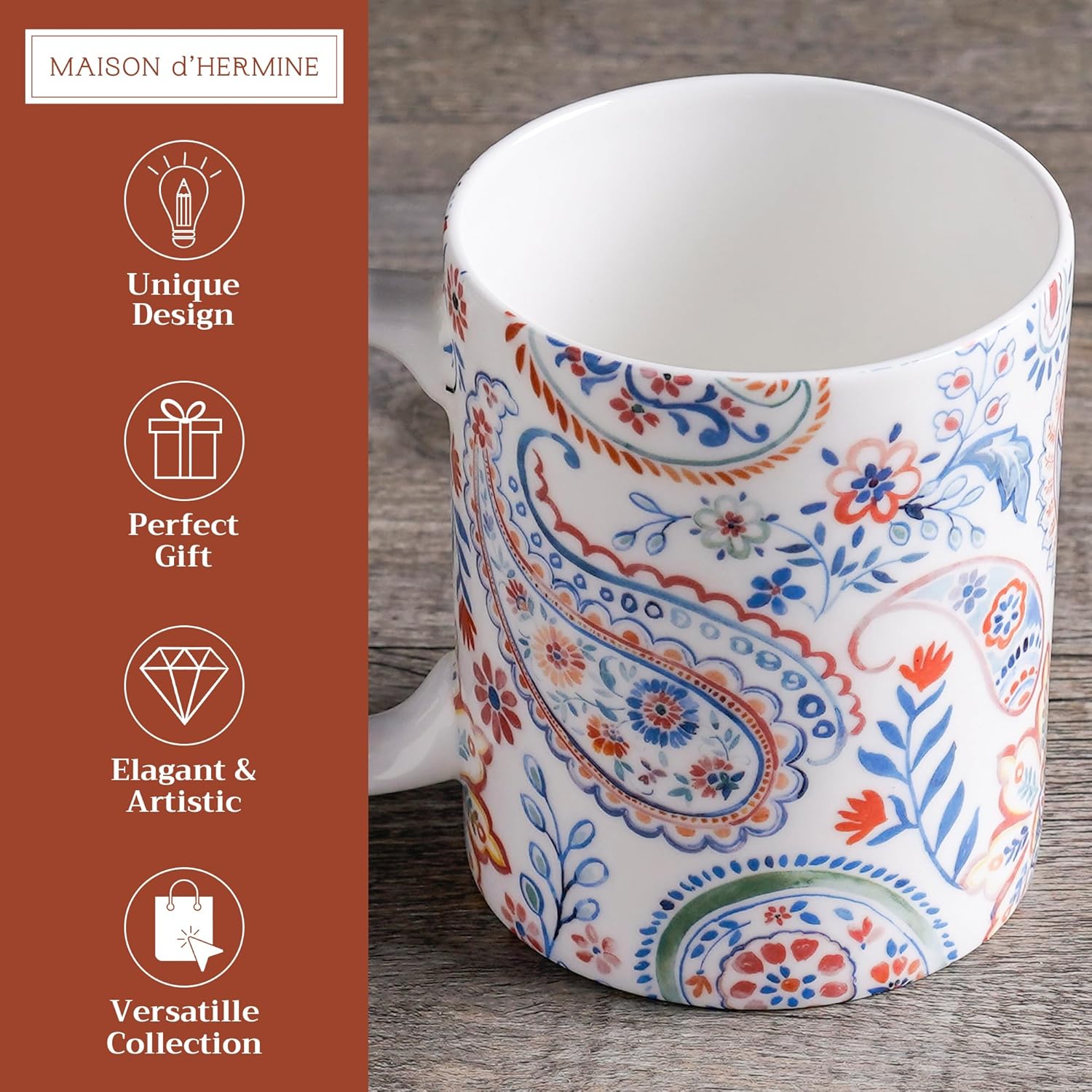 Maison d' Hermine Coffee Mug with Handles Fine Bone China Mugs Pack of One Tea Cups for Hot Beverages Cappuccino Latte Home Restaurant Office Perfect for Gift (Indian Floral - Paisley, 12 Ounce)