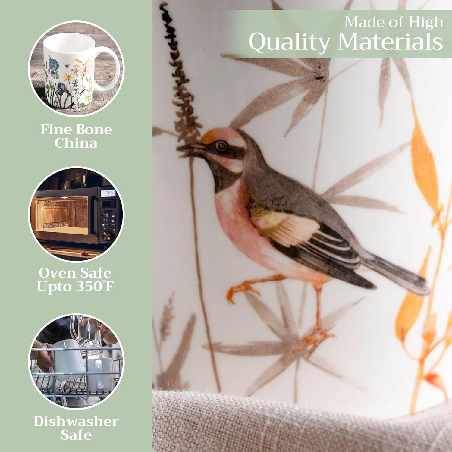 Maison d' Hermine Coffee Mug with Handles Fine Bone China Mugs Pack of Two Tea Cups for Hot Beverages Cappuccino Latte Home Restaurant Office Perfect for Gift (Meadow Florals, 12 Ounce)