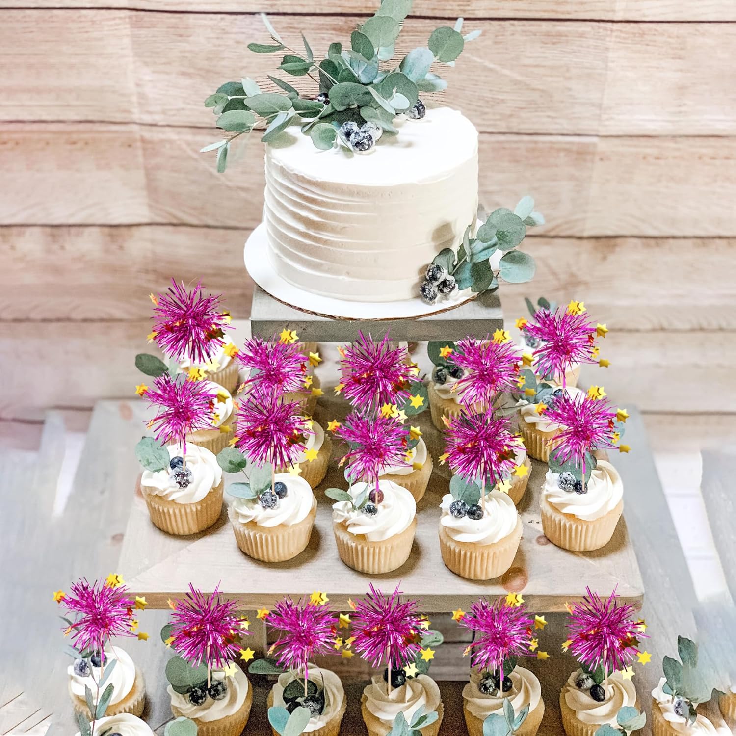 30 PCS Foil Firework Cupcake Toppers Happy Birthday Star Cupcake Picks Sparkle Tinsel Drink Stirrers Cocktail Fruit Toothpicks for Valentine's Day Wedding Birthday Party Decorations Supplies Purple