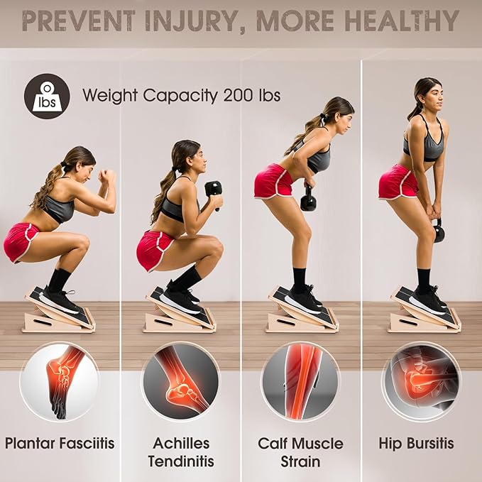 - Built for Safety: Crafted with high-quality heavy-duty wood, this board ensures durability and can support up to 200lbs. The non-slip surface with an antiskid pad guarantees a secure grip during workouts, while the antiskid feet and antisratching pads protect both the board and your floors.