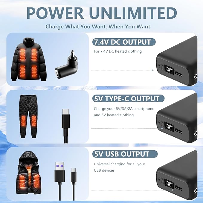 - Durable and Reliable Heated Vest Power Bank: Crafted with premium materials and ul/ce certified, our battery pack is designed for heated vests and built to last, even in the most demanding conditions