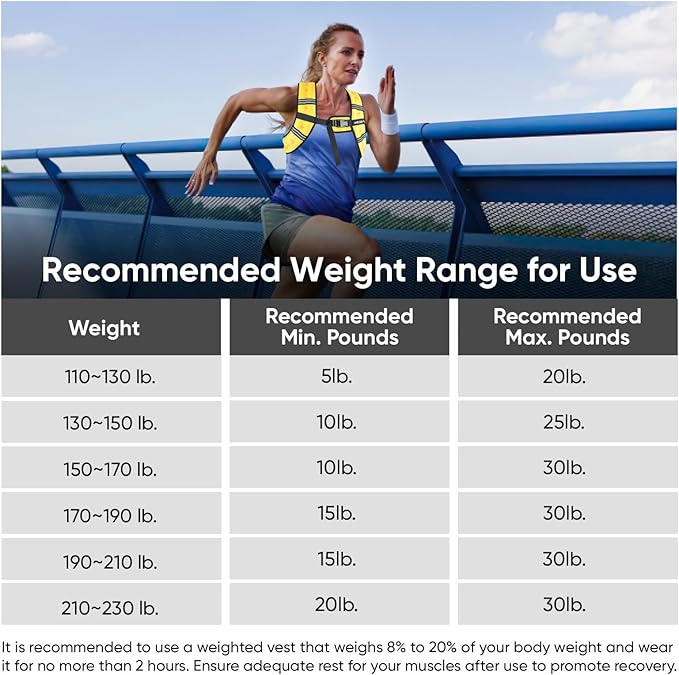 - [COMFORTABLE FIT] Our weighted vests are made from breathable and durable materials, with a comfortable design that distributes weight evenly across the body. The padded shoulder straps and waist belt ensure a secure and comfortable fit during any workout.