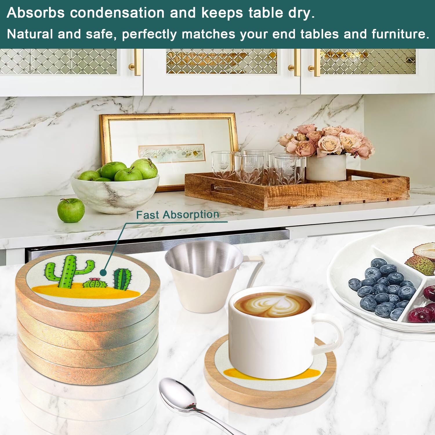 Cactus Coasters for Drinks, Minacun Absorbent Coaster Set of 5, Funny Coasters for Coffee Tabletop Protection, Unique Gift for Home, Office, Bar Decor, 4.3 Inches