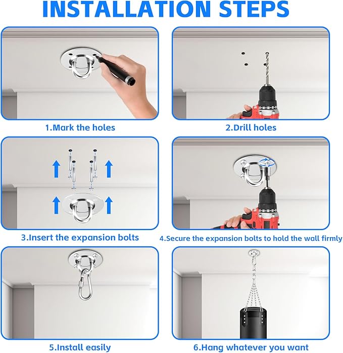 - Wide Application: Heavy bag ceiling mount not only great for all-size kick boxing, muay thai bag, hanging heavy boxing punching bag, but also perfect for hammock chairs swings, porch swings, swinging chairs, sling swings, spinner seats, or hanging any other swinging set and motion device