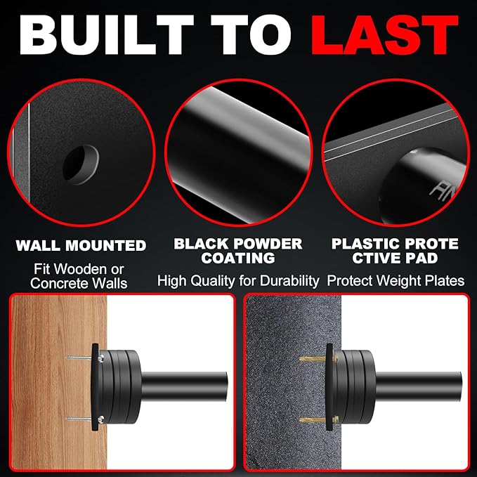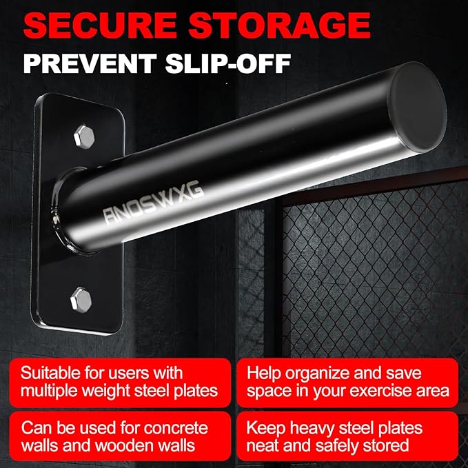 - Premium Weight Plate Storage Rack - Wall Mountable Bumper Plate Holder for Home Gym & Strength Training. Space-Saving Wall Mount Design: Ideal for organizing your weight plates and saving floor space. Heavy Duty & Stable: Strong steel pipe construction with an impressive weight capacity. Perfect Fit for 2" Plates: Designed specifically for 2-inch Olympic weight plates. Protective Foam Layer: Prevents plate wear and tear while ensuring a quiet workout environment. Versatile Installation: Suitable for both wood and concrete walls.