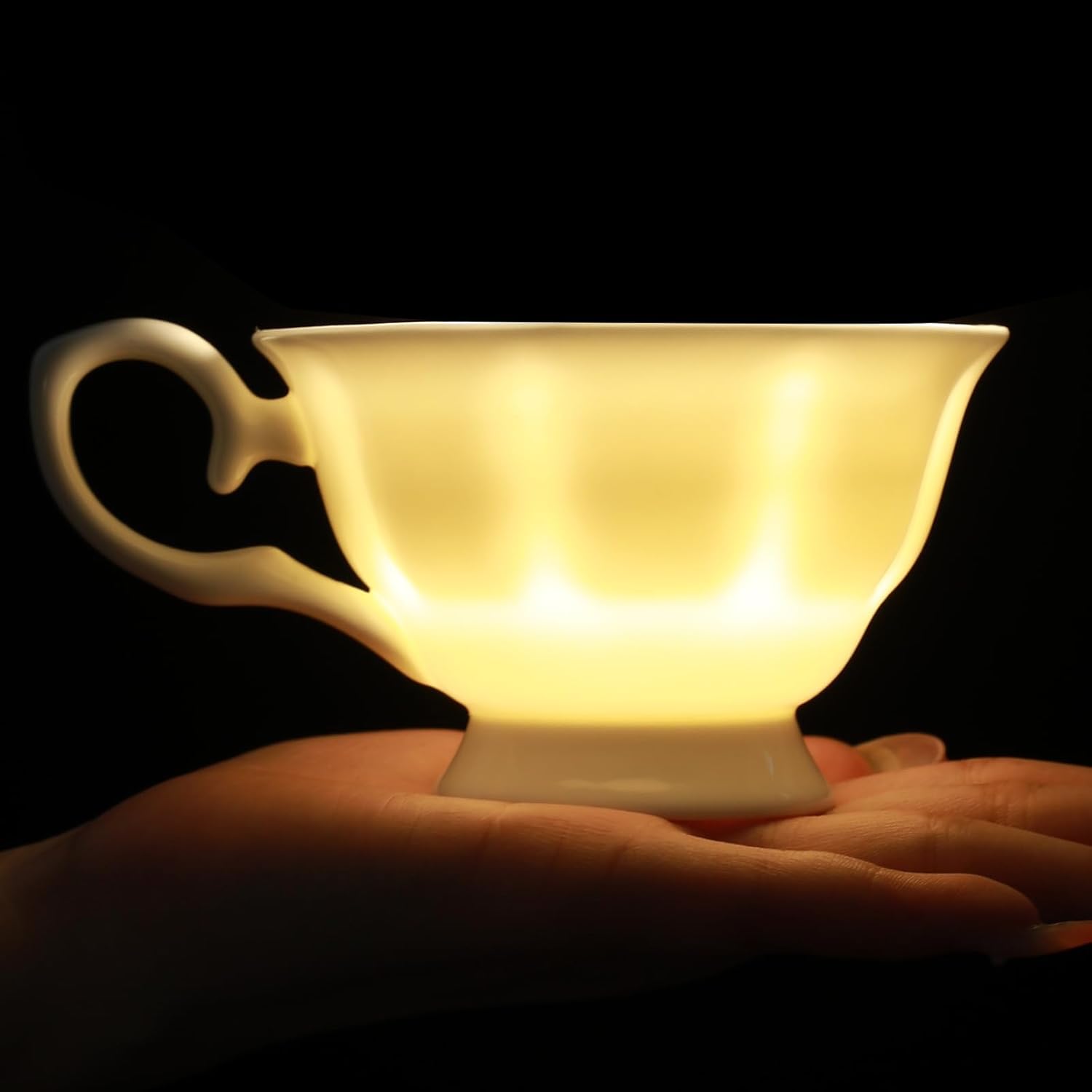 - [Luxury Bone China] Our cups and saucers are handmade from high-quality bone china. Compared to ordinary porcelain, they feature a more elegant whiteness, lighter weight, superior heat retention, and enhanced durability. When light passes through the cup's walls, it emits a soft, moonlight-like glow