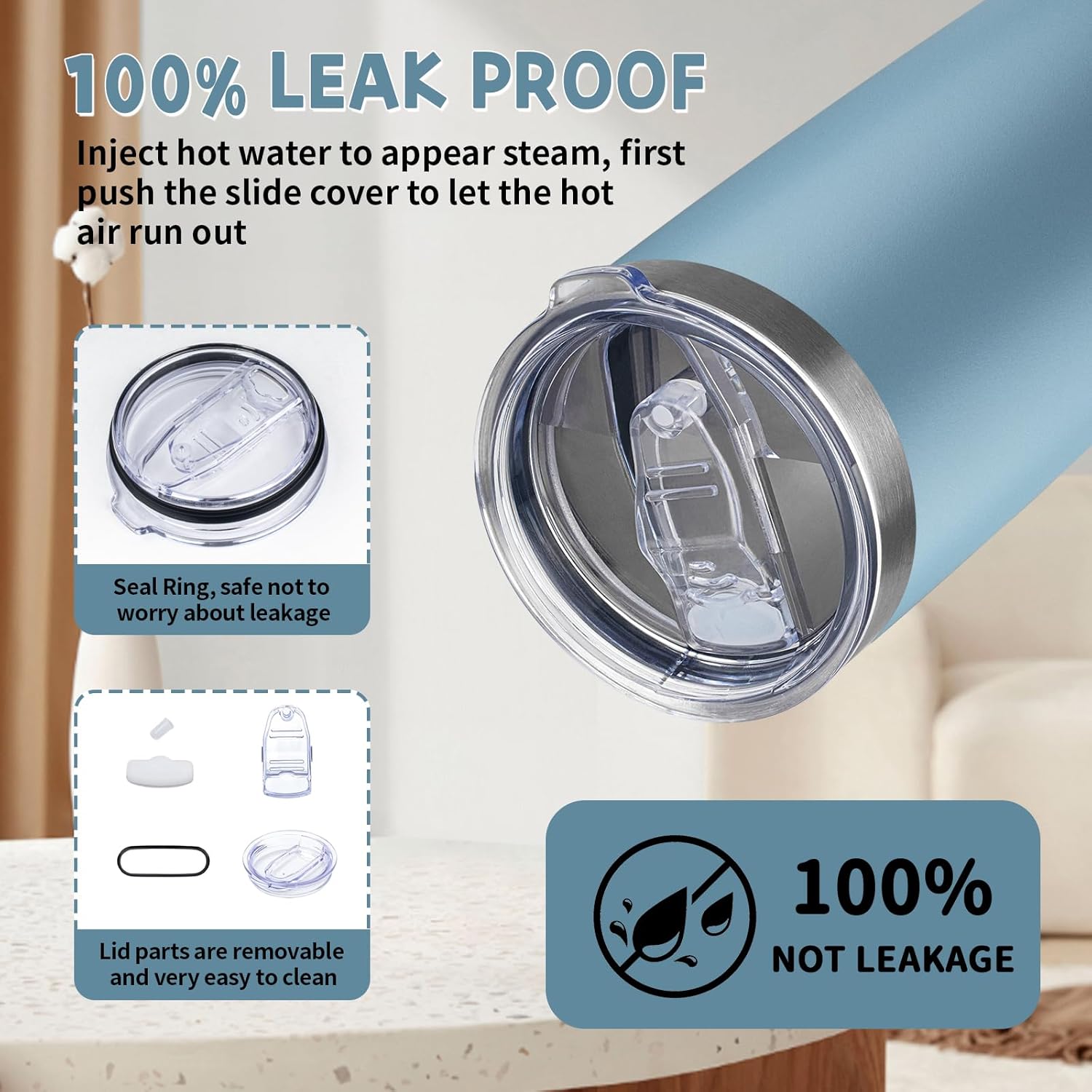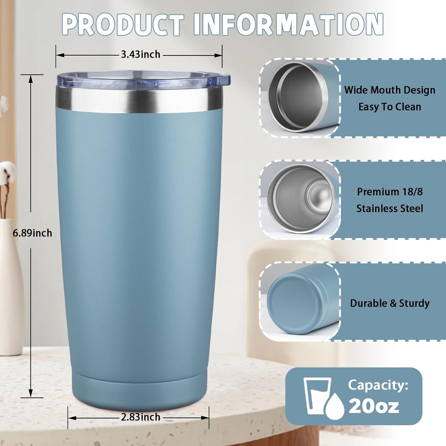 20 oz Tumbler with Lids and Straws, Stainless Steel Insulated Coffee Tumbler, Double Wall Vacuum Insulated Travel Mug Cup, Leakproof Thermal Coffee Cup for Hot and Cold Drinks (azure blue)