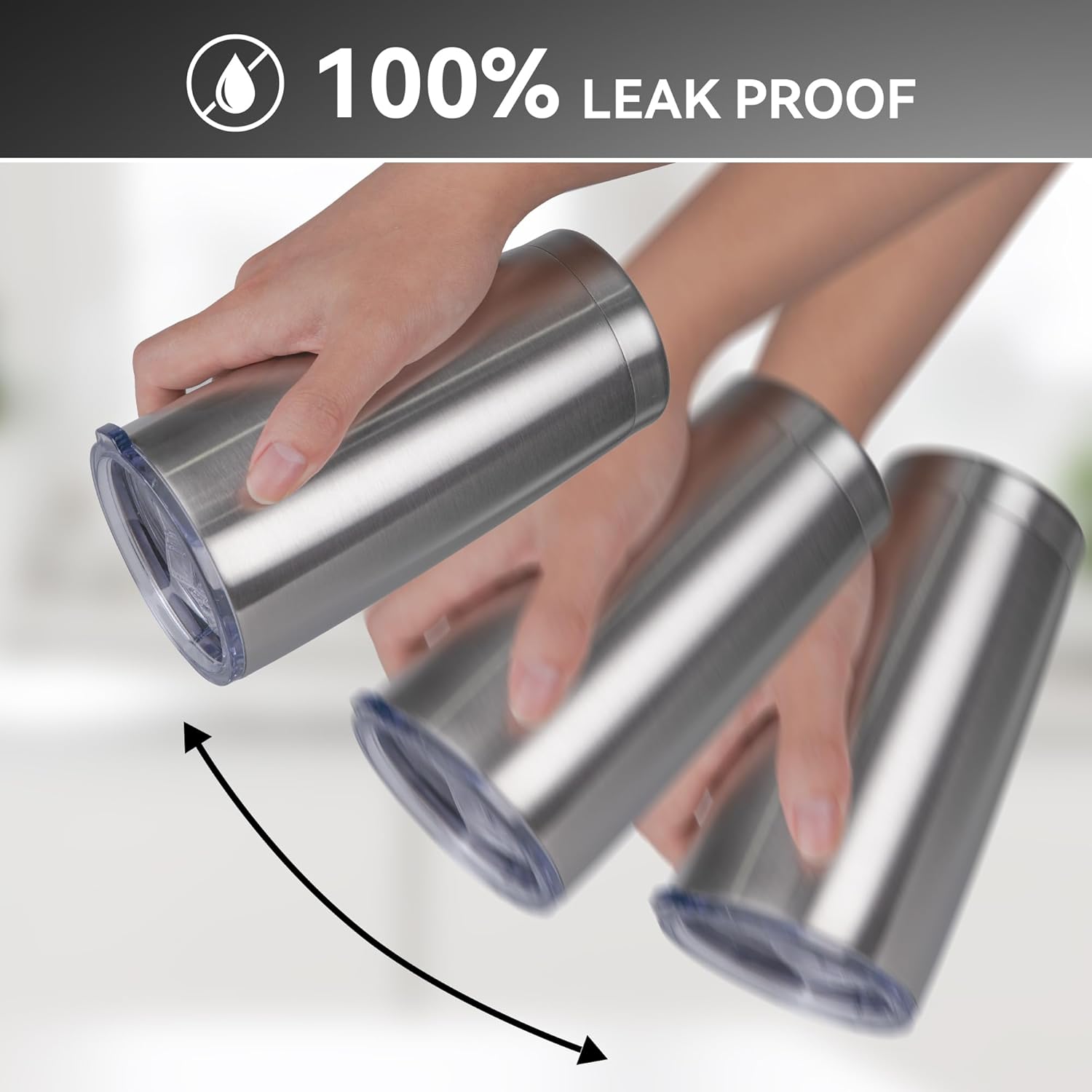 - 18/8 Stainless Steel Tumblers: Our tumbler cups are made of food-grade stainless steel, which makes them rust-resistant and unbreakable for heavy use all year round. The press-on lid is made of BPA-free plastic, which is safe and prevents leaks. These non-toxic tumblers provide a healthy drinking experience.