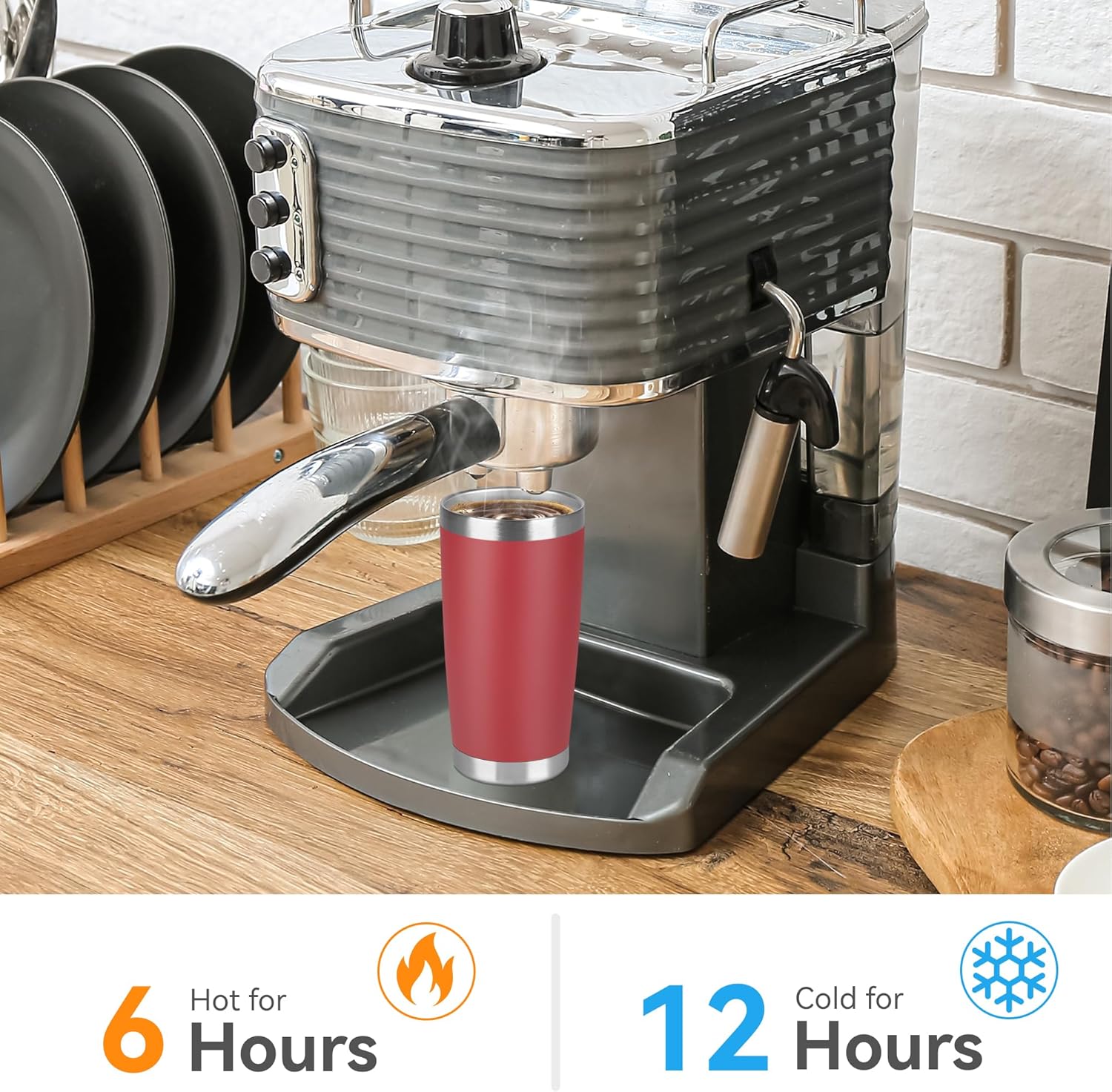 20 oz Tumbler Stainless Steel Tumblers Bulk with Lid Double Wall Insulated Coffee Tumbler Cups for Hot & Cold Drinks Powder Coated Travel Coffee Tumbler Mug Metal (Red, 1 pack)