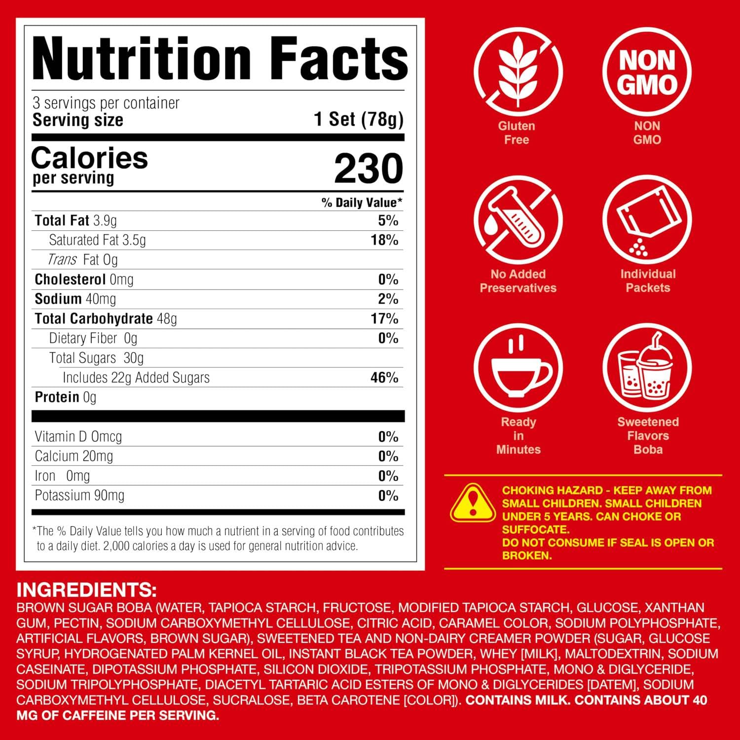 - READY IN UNDER 1 MINUTE - Our boba is made from preservative free instant tapioca pearls coated in brown sugar syrup. Microwave the boba packet, add hot water to milk tea powder in a cup, and add ice, heated boba, and straw. Yay it's done!
