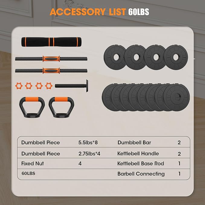 - 【4 in 1 Multifunctional Dumbbell Set】With the adjustable dumbbell set, it can boost your home workout level. Easily transform it into dumbbells, barbells, kettlebells, and push-up bars, switch exercise modes as you like. A 4-in-1 dumbbell set can meet your home gym needs and enjoy multi-faceted fitness