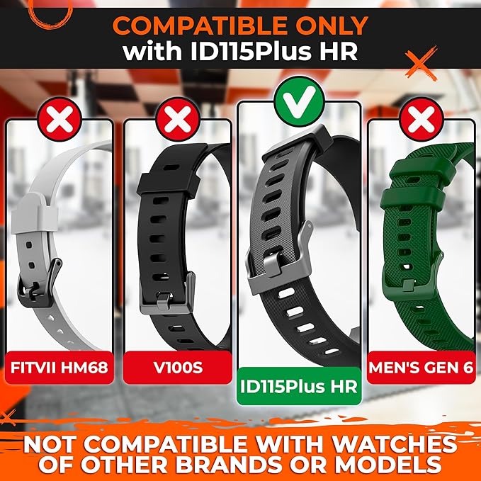 - Fitness Tracker Bracelet Compatibility: Our fitness smart wristband is only compatible with the ID115HR Plus fitness tracker. Our smart watch strap cannot be used with ID115, ID115HR, ID115U or others