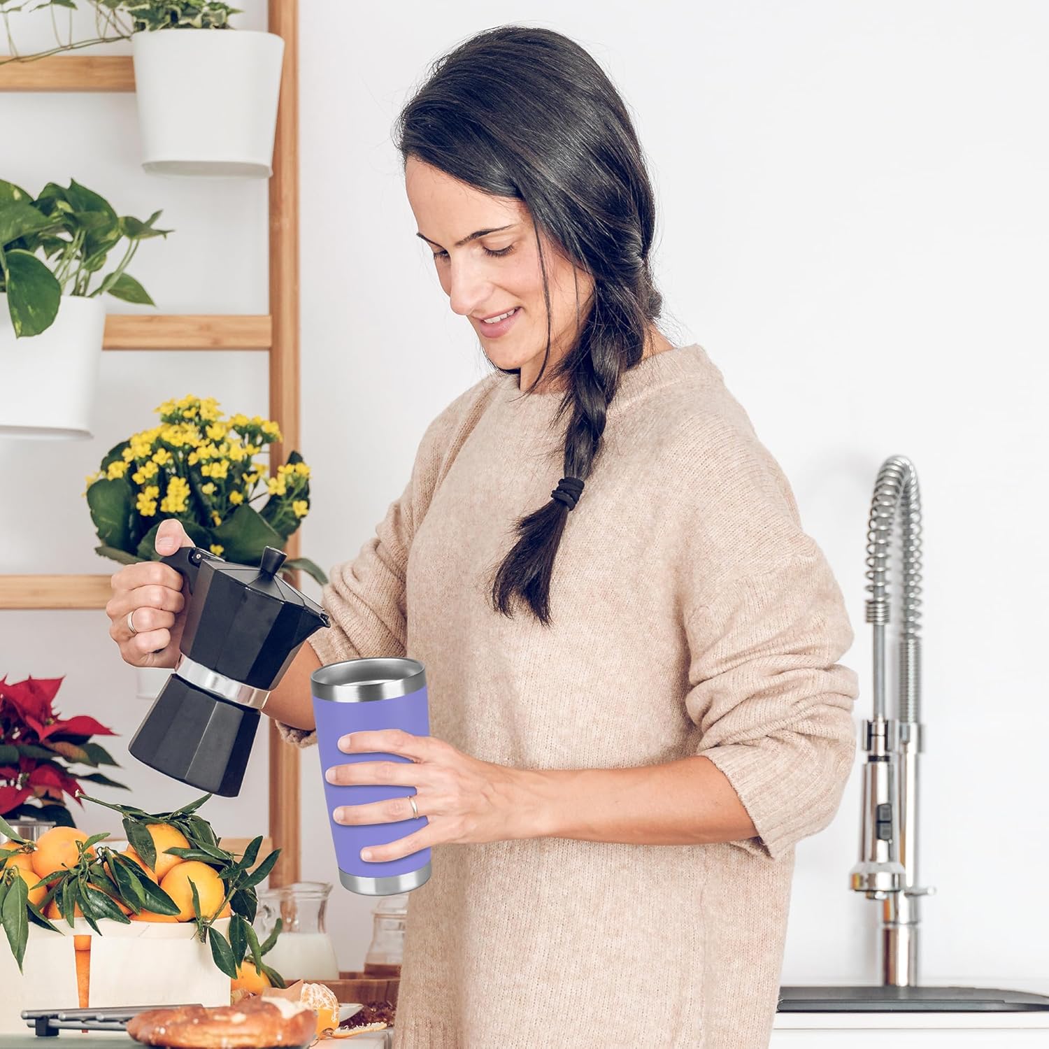 20 oz Tumbler Stainless Steel Tumblers Bulk with Lid Double Wall Insulated Coffee Tumbler Cups for Hot & Cold Drinks Powder Coated Travel Coffee Tumbler Mug Metal (Lavender, 1 pack)