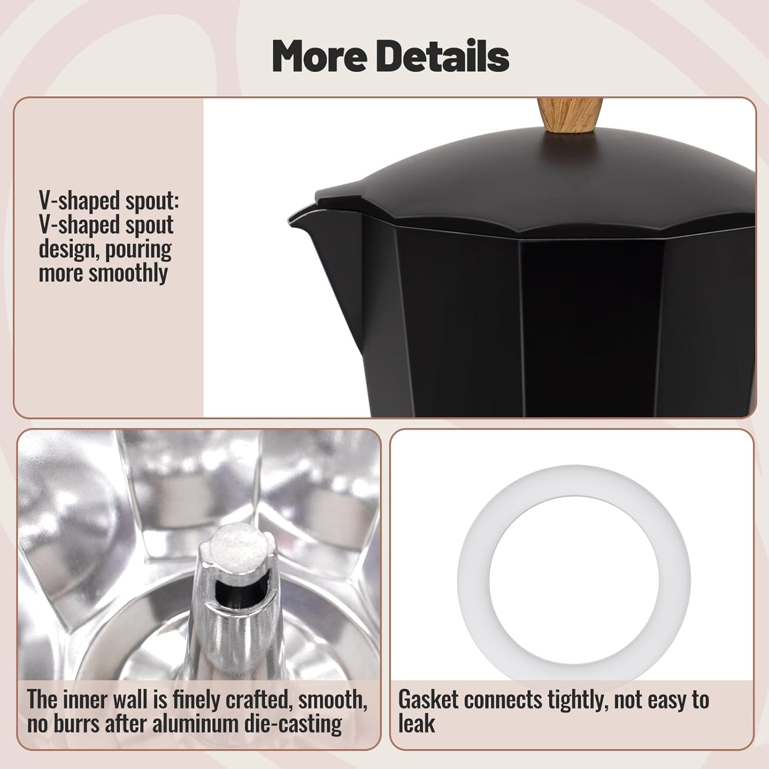 - Exquisite Taste Experience: Elevate your coffee moments with our Moka pot. It's not just about the incredible taste of your cup of coffee; it's about the whole experience. Unleash your creativity and prepare personalized, smooth, and rich brews for your loved ones, evoking elegance and style, regardless of the occasion or setting